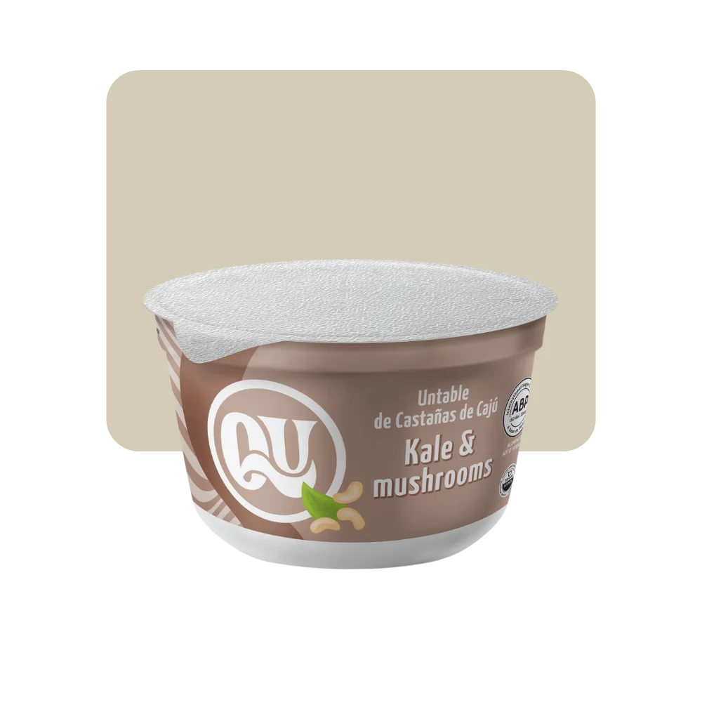 Untable cremoso de castana con sabor a kale y champigñones, ideal para snacks y acompañamientos.