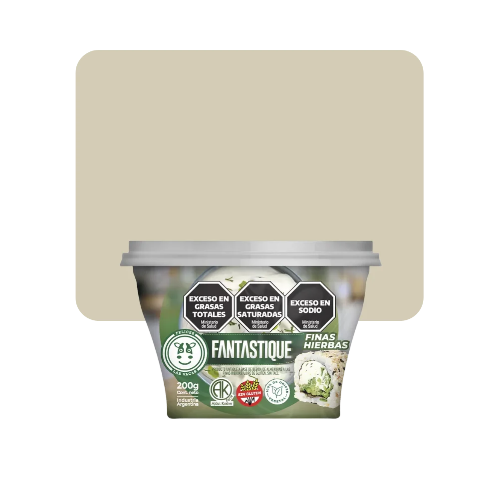 Ingredientes: Bebida de almendras (agua, almendras), almidón, aceite de girasol, aceite vegetal interesterificado, finas hierbas, sal, ACREG: ácido cítrico INS 330, ESP: goma guar INS 412, CONS: sorbato de potasio INS 202. CONTIENE ALMENDRAS. PUEDE CONTENER CASTAÑAS DE CAJÚ.