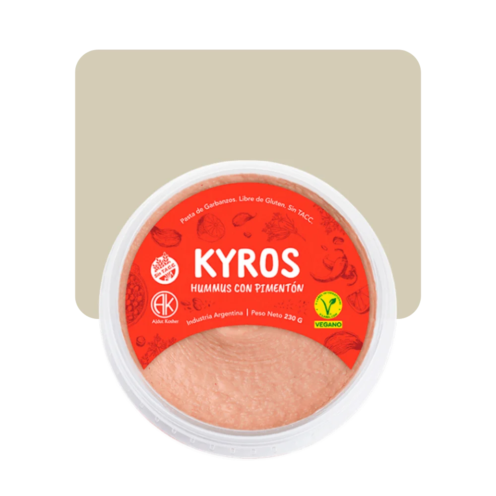 Ingredientes: Agua; Garbanzos; Aceite de Girasol; Tahini (Pasta a base de Semillas de Sésamo Blanco Tostado); Sal; Pimentón; Ajo; Acidulante: Ácido Cítrico; Conservante: Sorbato de Potasio. PUEDE CONTENER HUEVO, SULFITOS Y DERIVADOS DE LECHE.