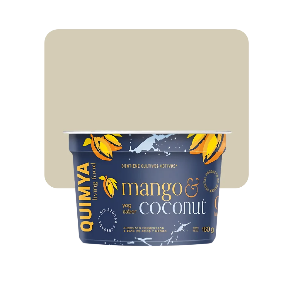 Ingredientes: Agua, coco, gelificante (agar), estabilizante (goma xántica), antioxidante (ácido ascórbico), mango, sal, sucralosa. *cultivos activos (streptococcus thermophilus y lactobacillus delbrueckii ssp. bulgaricus. Adicionado con: lactobacillus acidophilus y bifidobacterium spp. lactis). PUEDE CONTENER ALMENDRAS, NUECES Y CASTAÑAS DE CAJÚ.
