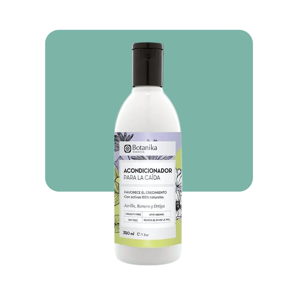 La combinación de activos naturales del acondicionador anticaída previene la grasitud y ayuda a intensificar la circulación local. Favorece la renovación celular y la correcta nutrición de los folículos. Reactiva el crecimiento del cabello. Promueve la circulación local. Es de origen 100% natural. Protege la estructura capilar dañada. Refuerza las defensas naturales del cabello.Sin TACC – Apto vegan – Cruelty freeModo de uso: Aplicar sobre el cabello húmedo después del shampoo, masajear suavemente el cuero cabelludo con las yemas de los dedos en forma circular, dejar actuar unos minutos. Enjuagar y repetir si es necesario. Evitar el contacto con los ojos.