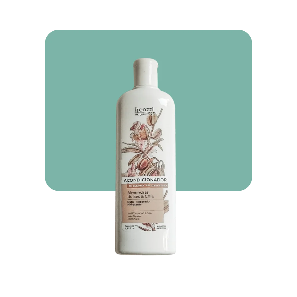 Acondiconador de almendras dulce y chia. Libre de sin siliconas. Suaviza y desenreda el cabello otorgando un finalizado brilloso. Cabellos resecos y/o puntas dañadas.