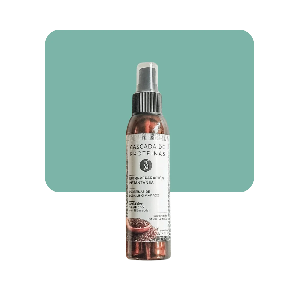 Cascada de proteínas para todo tipo de cabello, incluso muy maltratados. Protección UV – Antifrizz – Restaurador Capilar – El alisado dura más tiempo – Protege del calor de la planchita – Proteínas de Soja, Lino y Arroz. Sin aceites ni alcohol.