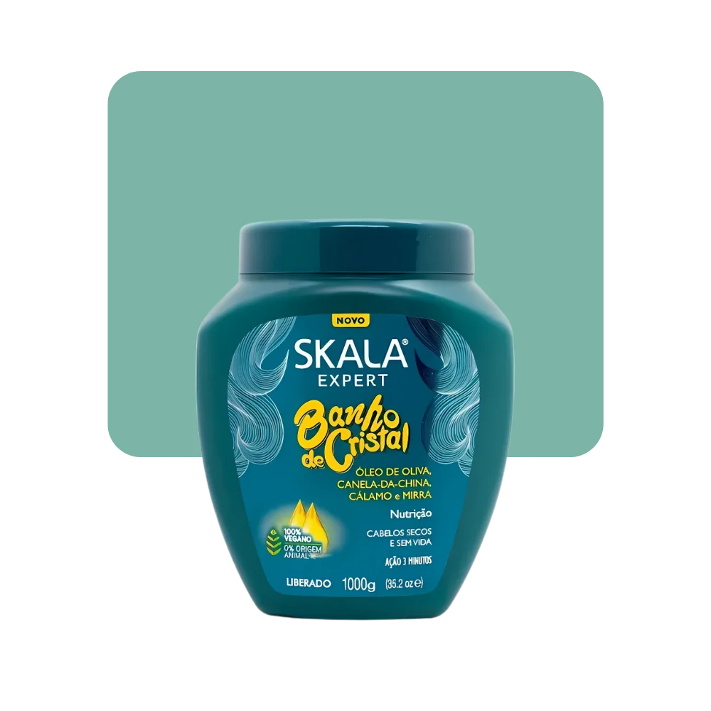 Skala Divinamente Macio Baño De Cristal es un tratamiento acondicionador, enriquecida con vitamina E y D´Panthenol, tiene una fórmula balanceada que trata el cabello castigado por la acción del sol, viento y mar, devolviendo la seda y el brillo.›100% Vegano ›No Testeado En AnimalesModo de uso: Se puede utilizar como acondicionador dejando actuar 3 minutos y enjuagar; como máscara de tratamiento dejando actuar 15 minutos y enjuagar.