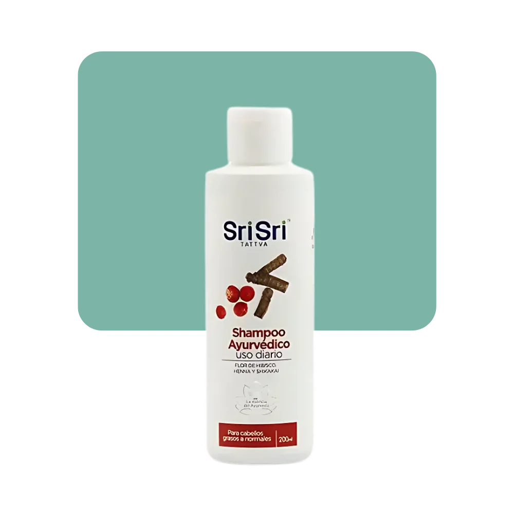 Shampoo ayurvédico para cabellos grasos a normales de uso diario con Flor de hibisco, Henna, y Shikakai.