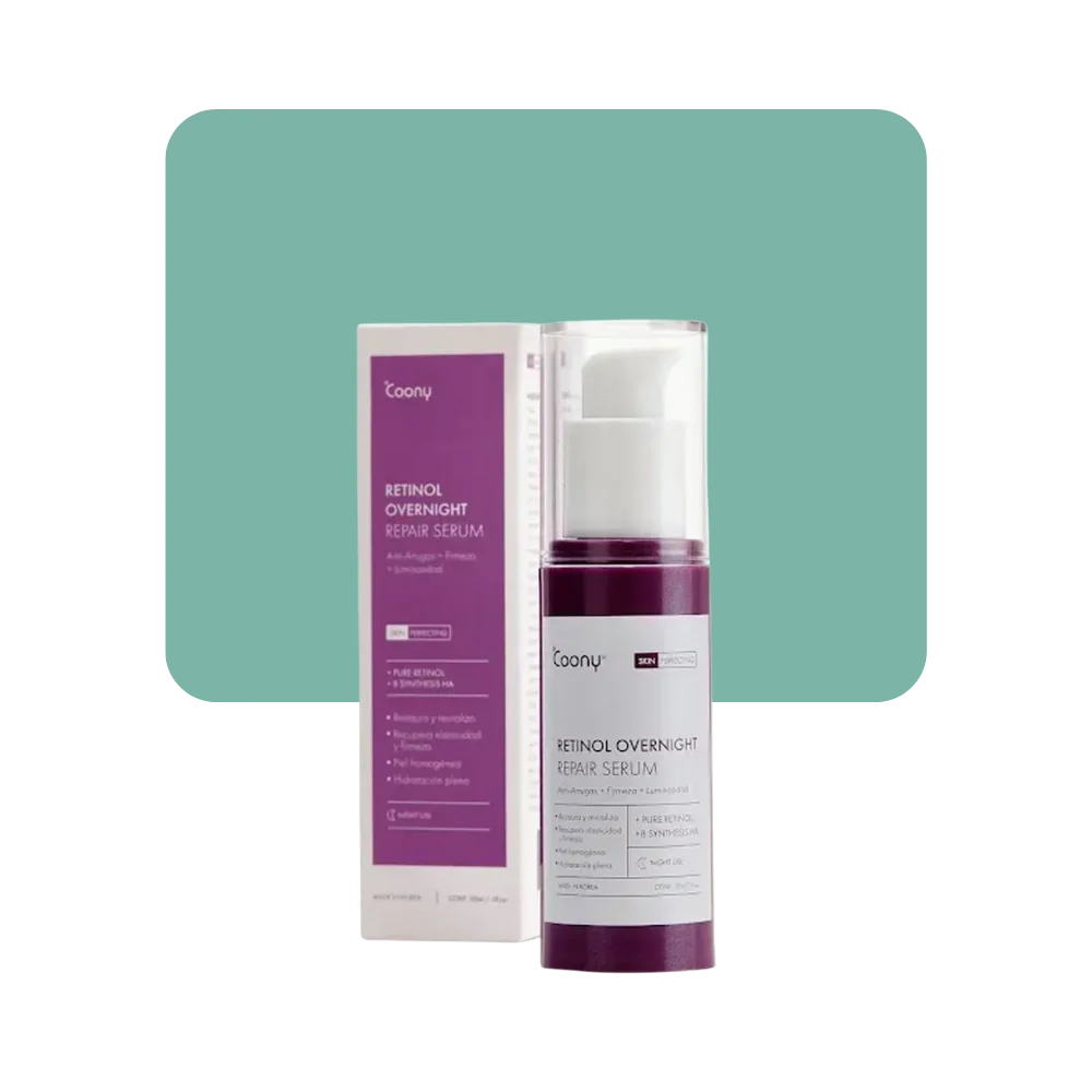 Modo de uso: En la rutina nocturna, sobre el rostro limpio, aplicar entre 2 a 3 gotas. Distribuir masajeando con la yema de los dedos y con delicadas palmaditas hasta que absorba. Sellar con la crema hidratante Coony Multi-Active. Utilice protector solar al día siguiente.