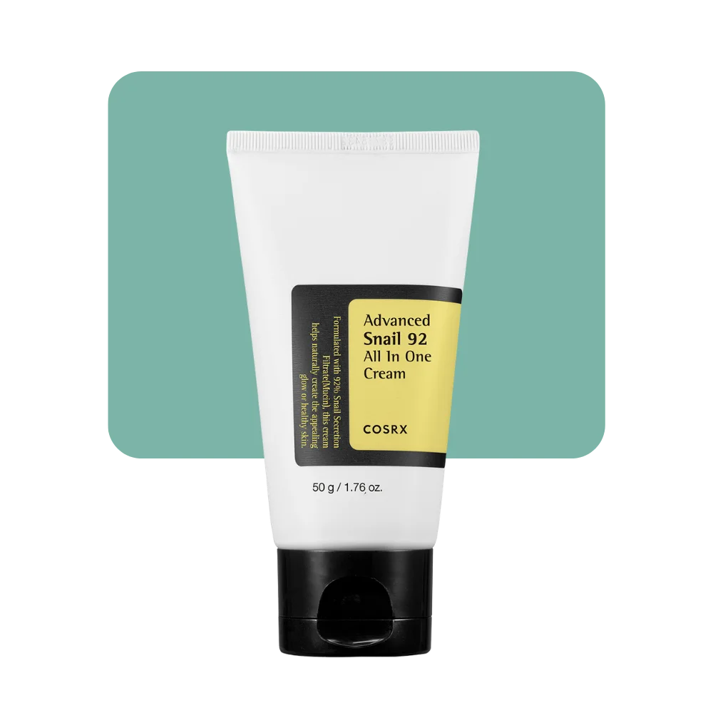 La COSRX Advanced Snail 92 All In One Cream está formulada con un 92% de filtrado de secreción de caracol, conocido por sus propiedades regeneradoras e hidratantes.