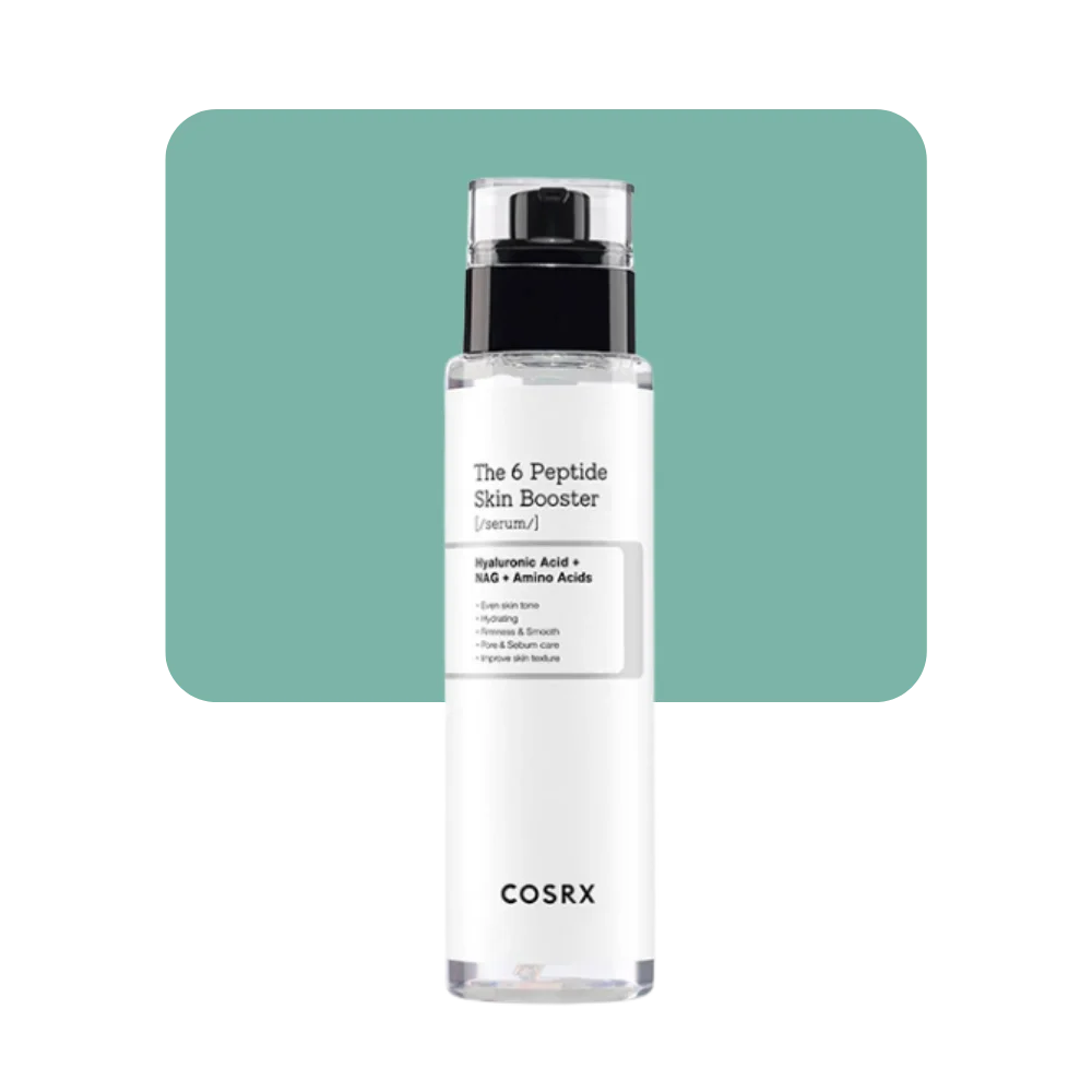 El COSRX The 6 Peptide Skin Booster Serum es un paso híbrido entre tónico y serum, formulado con un complejo de 6 péptidos que ayudan a mejorar la apariencia de firmeza, textura y luminosidad de la piel.