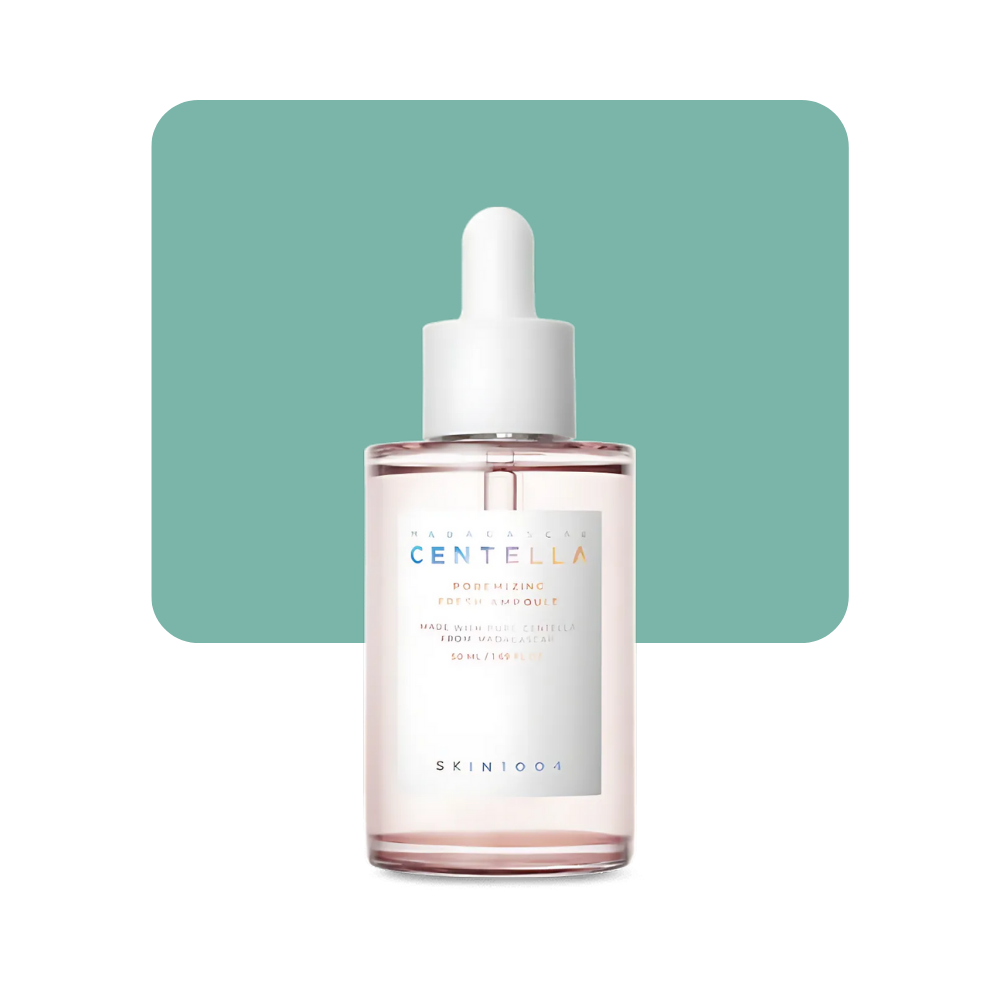 Sérum refrescante con extracto de centella asiática de Madagascar, ideal para reducir la apariencia de poros y calmar la piel sensible.