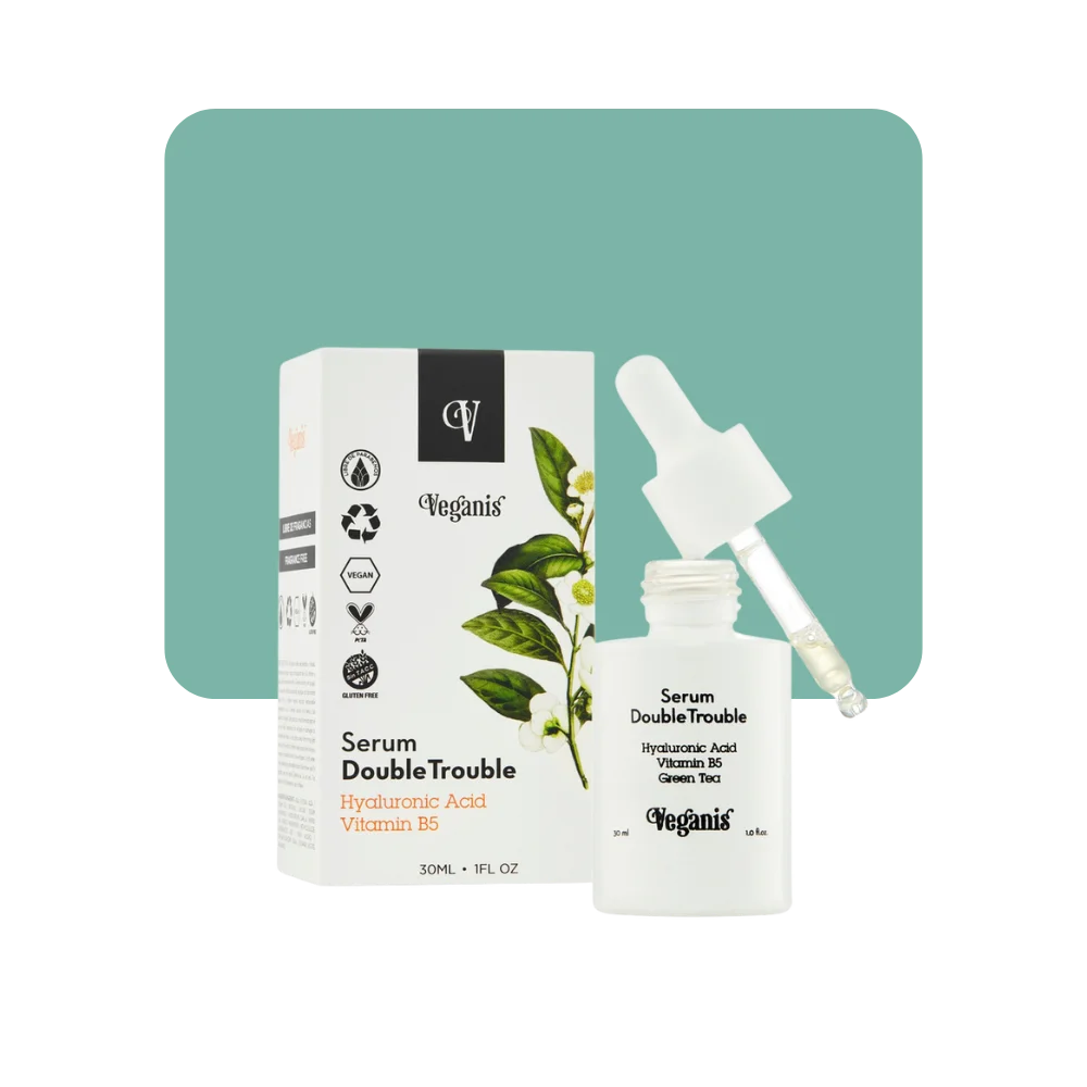 El Serum Double Trouble se caracteriza por su textura ligera y rápida absorción que actúa intensamente para atenuar arrugas y líneas de expresión. Además, aporta firmeza y tersura a la piel gracias a su composición, fruto de una combinación de Ácido Hialurónico, Vitamina B5 y Té Verde. Mejora la hidratacion del estrato corneo, reduciendo la perdida de agua transepidermica y manteniendo la suavidad y elasticidad de la piel. El Té Verde con su acción antioxidante, protege tu piel de los radicales libres, unificando el tono y aumentando el brillo. No testeado en animales. Libre de parabenos, fragancias, alcoholes, colorantes artificiales y siliconas.