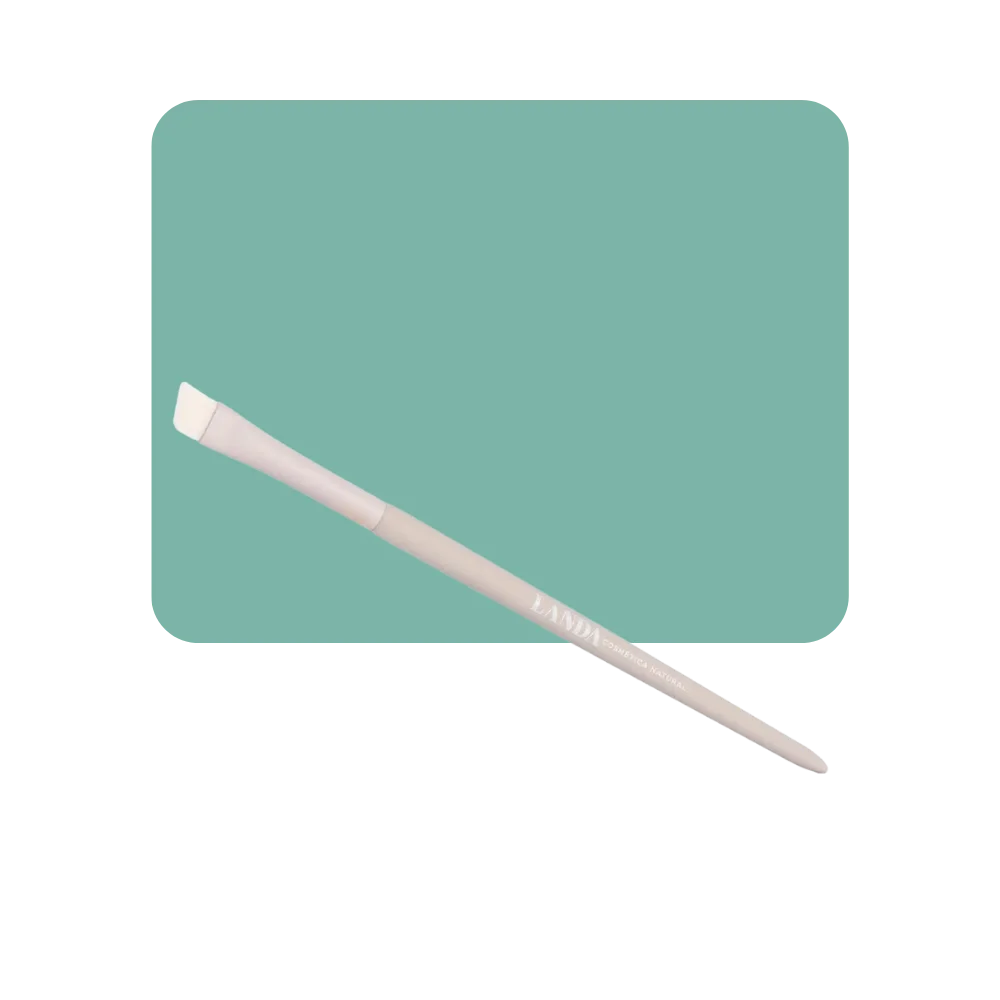 Pincel de calidad profesional, de cabello suave, fino y compacto, permite la aplicación de productos con gran precisión. Con un formato chato y angulado, ideal para delineados y cejas.