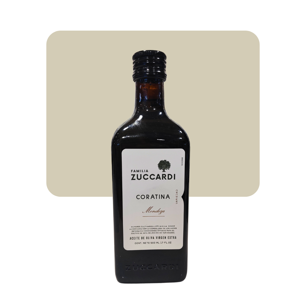 El Aceite de Oliva Virgen Extra Zuccardi Coratina proviene de olivares seleccionados en el Valle de Uco, Mendoza. La Coratina, originaria de Italia y reconocida por su potencia aromática, se expresa aquí con un frutado verde profundo, donde se perciben hierbas frescas, tomate y alcaucil. En boca, entrega una armonía perfecta entre amargor y picor, con final largo y persistente.