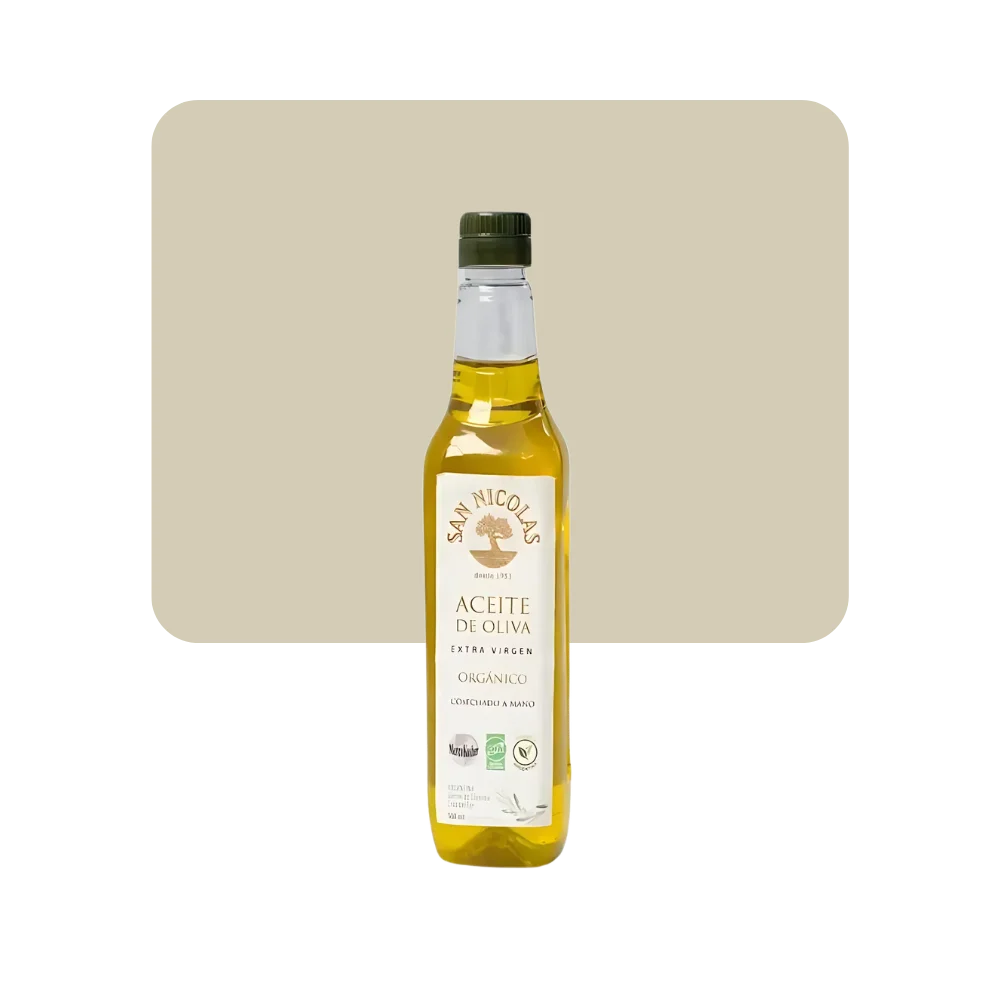 Un aceite de oliva virgen extra orgánico, obtenido a partir de una cuidadosa selección de aceitunas de las variedades Arbequina (70%), Farga (15%) y Nevadillo (15%).