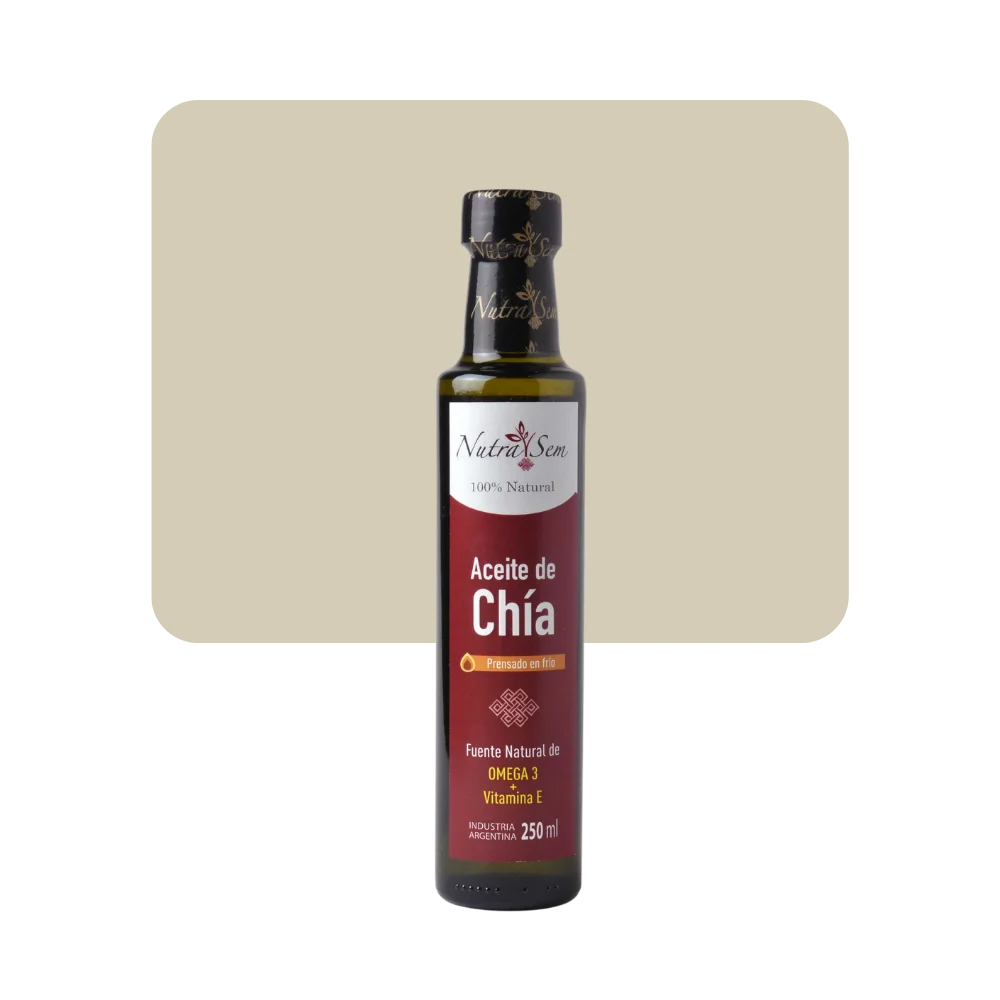 El aceite de chia tiene alto contenido de Omega3, que es indispensable para nuestro organismo ya que no lo produce.