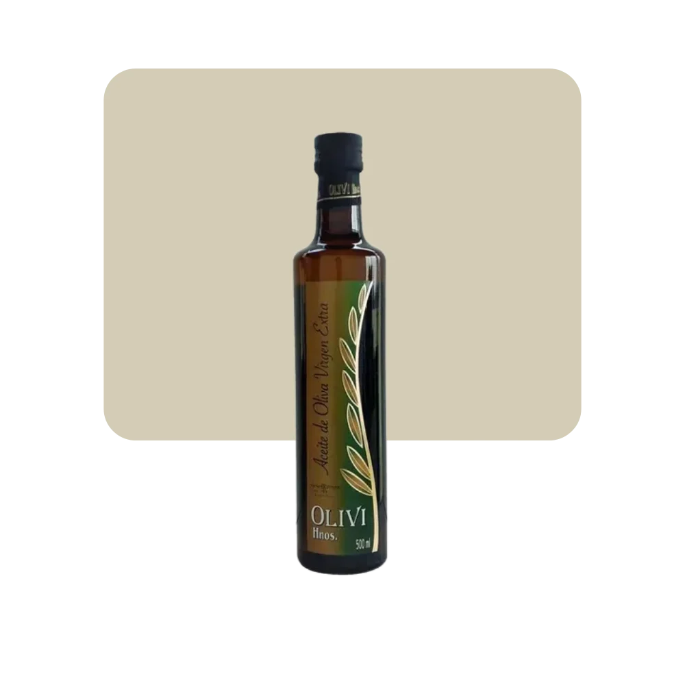 Aceite de oliva extra virgen. Envase de vidrio, calidad premium.