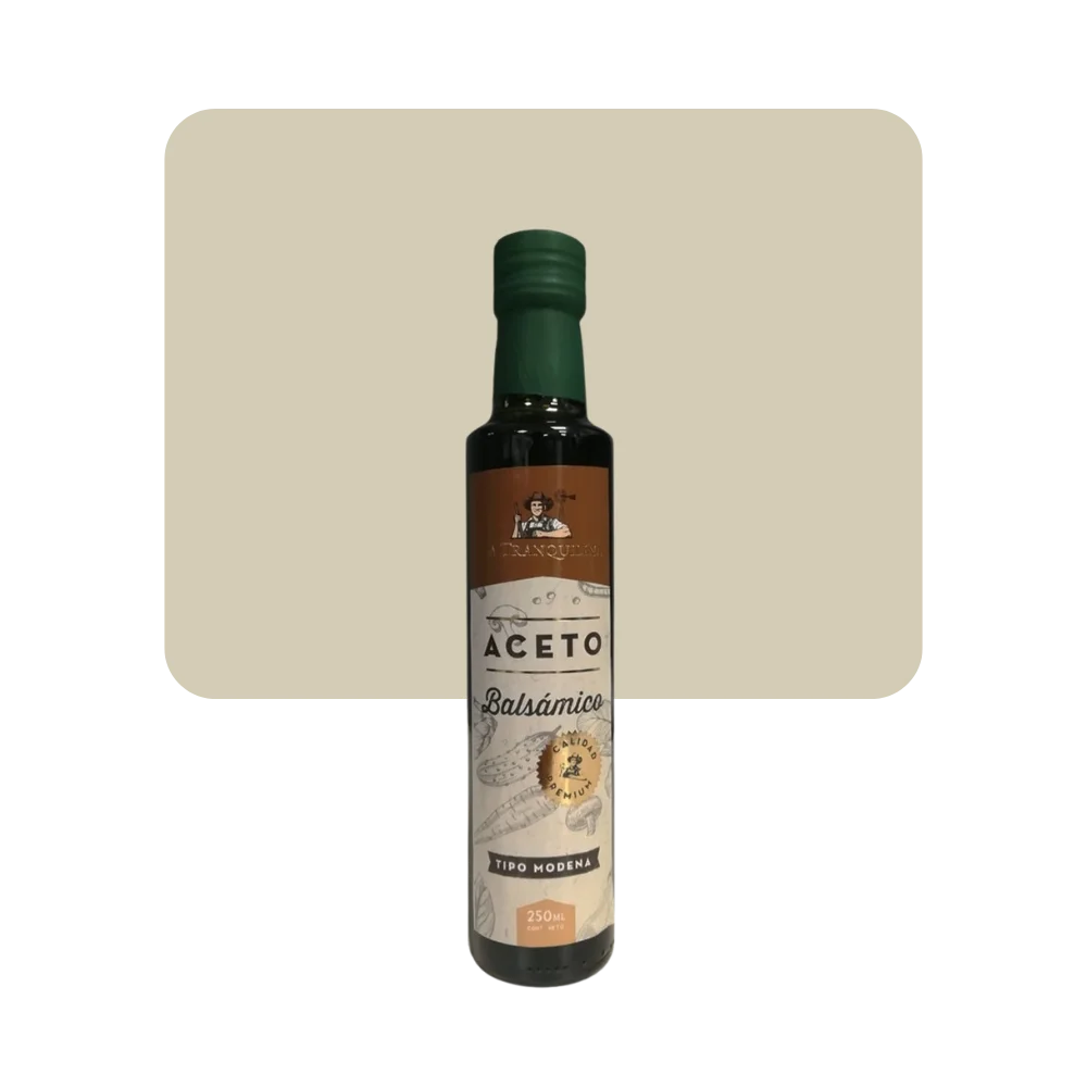 El Aceto Balsámico Tipo Módena de Tranquilina combina tradición y sabor en cada gota. Elaborado a partir de mosto de uva concentrado y vinagre de vino, es ideal para realzar ensaladas, vegetales asados, carnes, quesos y hasta postres. Su textura suave y sabor agridulce lo convierten en un aliado perfecto en la cocina saludable y gourmet.