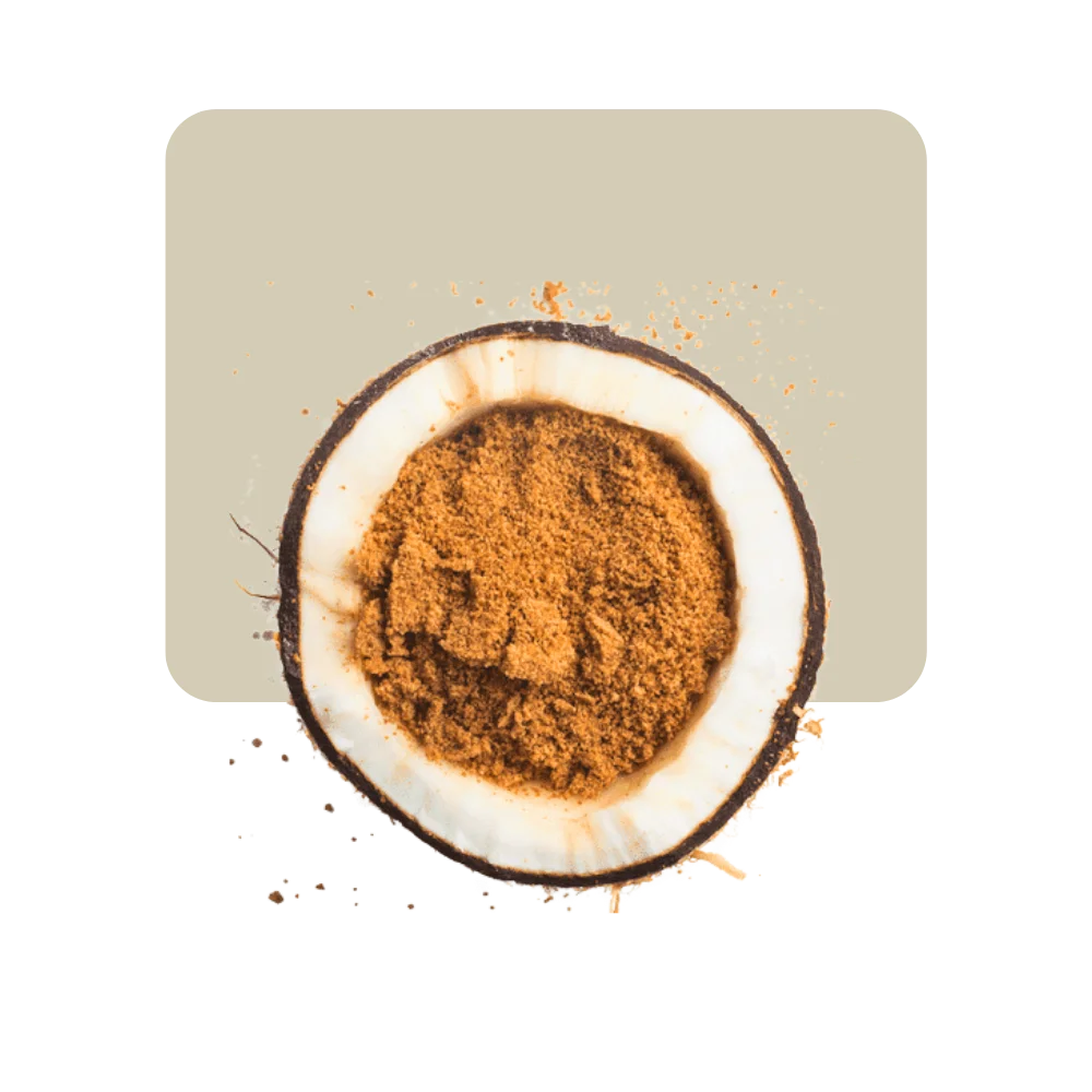 El azúcar de coco tiene contenido de aproximadamente 80% de agua, 15% de azúcar y 5% de minerales, es considerado un endulzante saludable y natural.