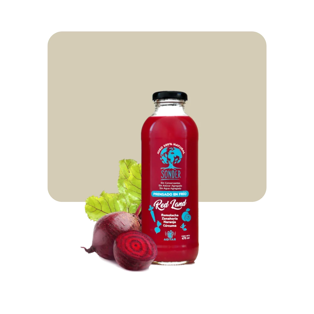 El jugo Detox Red Land es una poderosa combinación de frutas y verduras prensadas en frío para preservar sus nutrientes naturales.