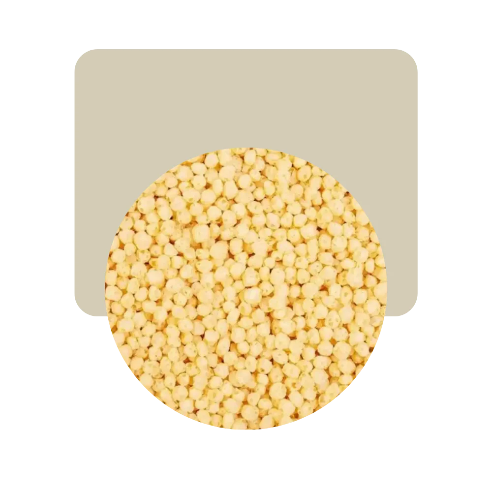 Alimento elaborado con harina de quínoa y azúcar orgánica. De sabor suave y textura crocante, listo para consumir. Ideal para desayunos y meriendas, se puede disfrutar con leche, yogur, bebidas vegetales y licuados. Perfecto para combinar con frutos secos, desecados y otros cereales en la elaboración de granolas y barritas. Sin TACC, apto para celíacos.