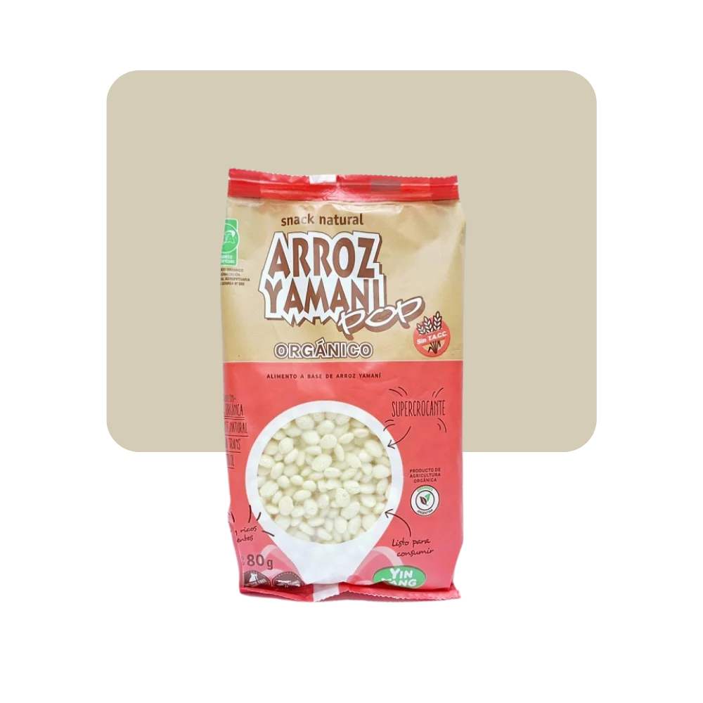 Cereal inflado a base de arroz integral yamaní. Elaborado con azúcar orgánica.