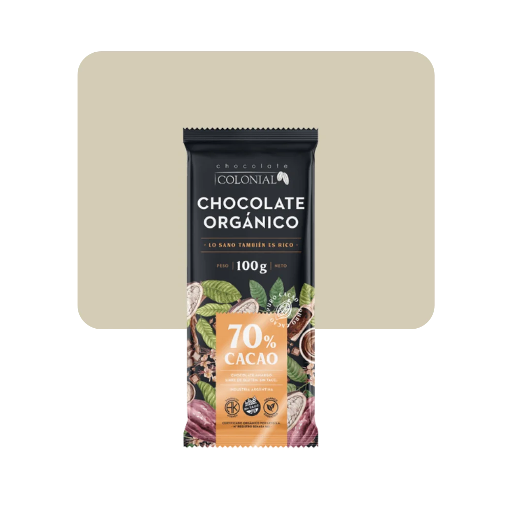 Ingredientes: licor de cacao orgánico, azúcar orgánico, manteca de cacao orgánica.