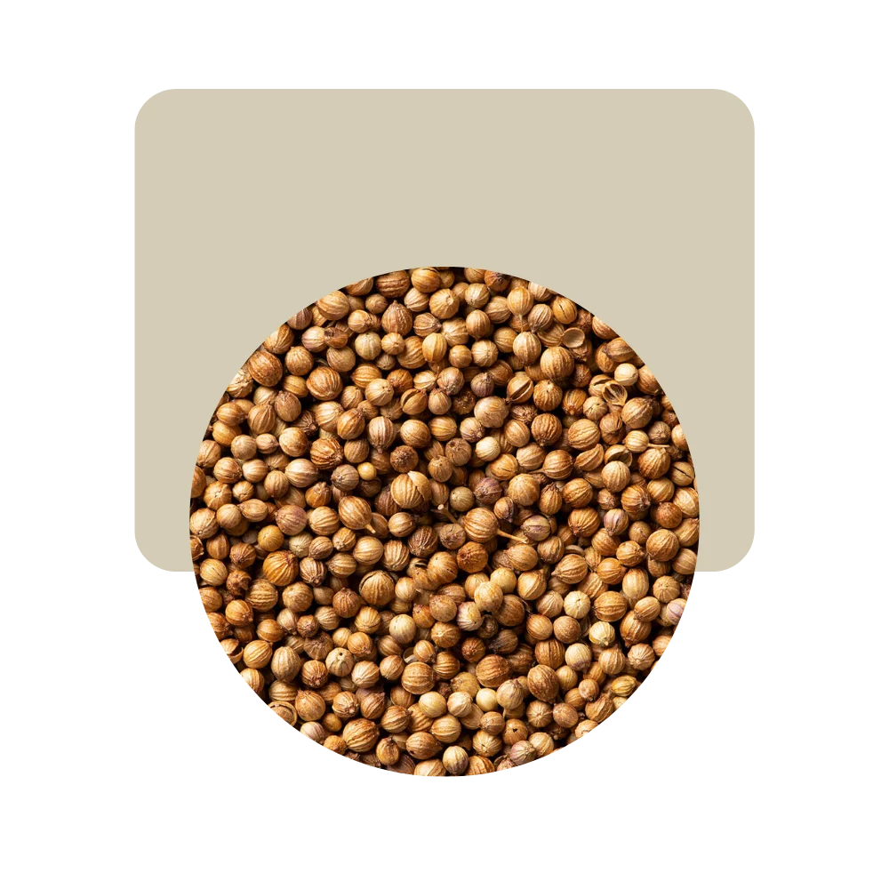 El coriandro es una especia obtenida al moler las semillas secas de la planta de cilantro (Coriandrum sativum). Tiene un aroma cítrico y especiado con notas terrosas y florales.