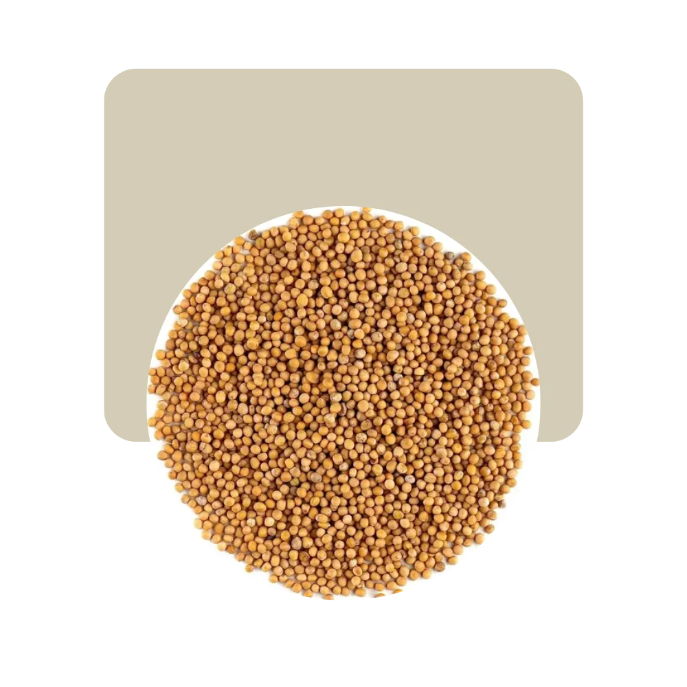 Las semillas de mostaza amarilla son pequeñas semillas redondas, de color amarillo dorado que tienen un sabor ligeramente picante y un aroma distintivo.