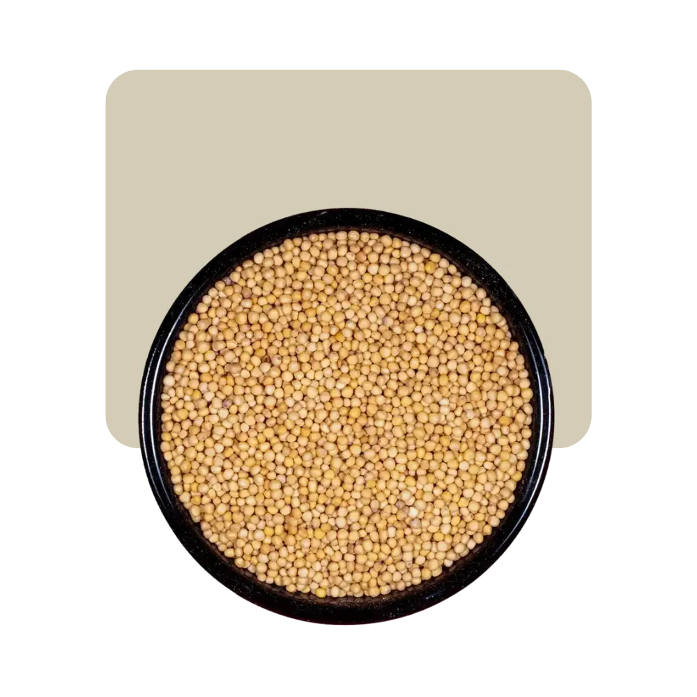 Las semillas de mostaza amarilla son pequeñas semillas redondas, de color amarillo dorado que tienen un sabor ligeramente picante y un aroma distintivo.