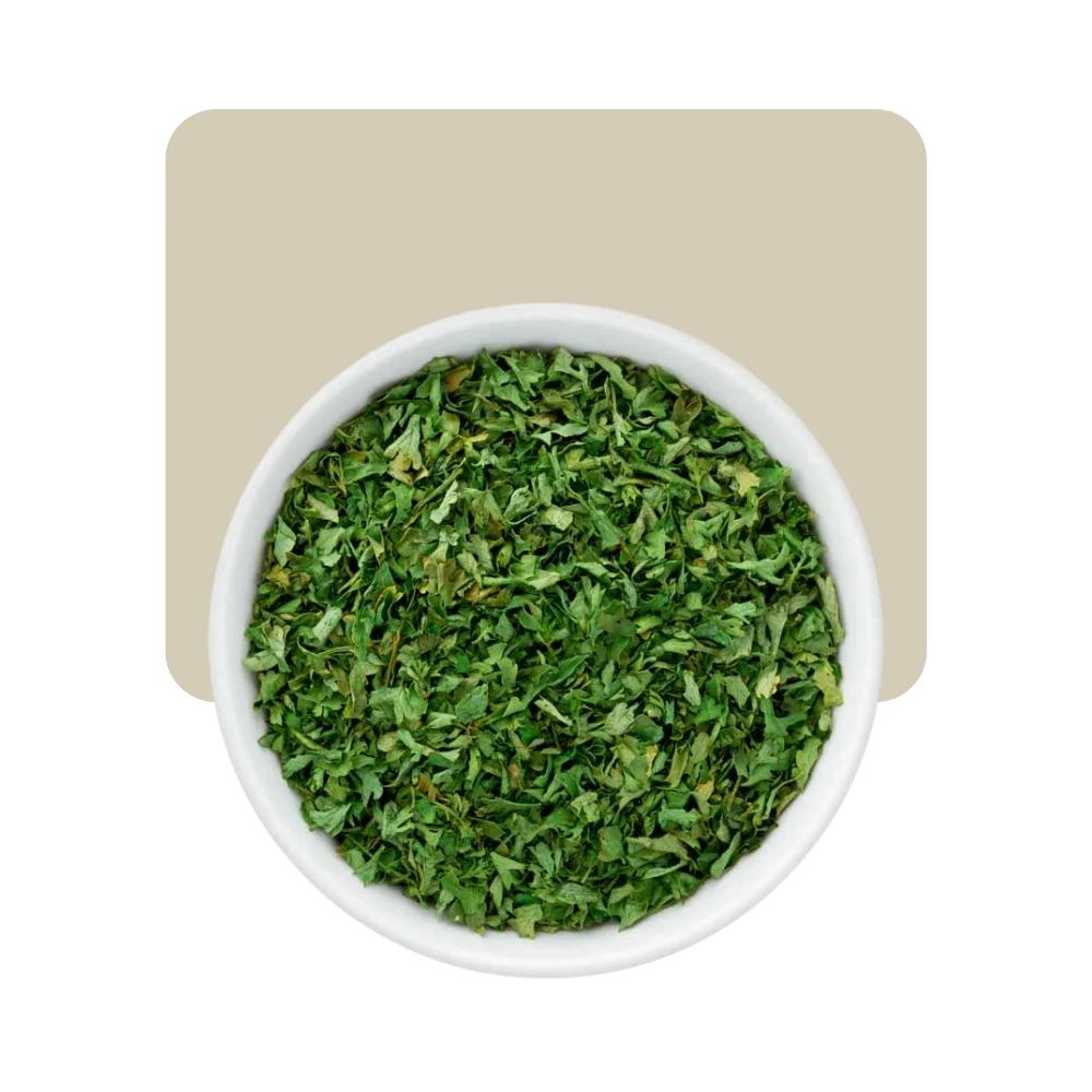 El perejil es una hierba aromática de hojas verde brillante, muy utilizada en la cocina como condimento y decoración de platos.