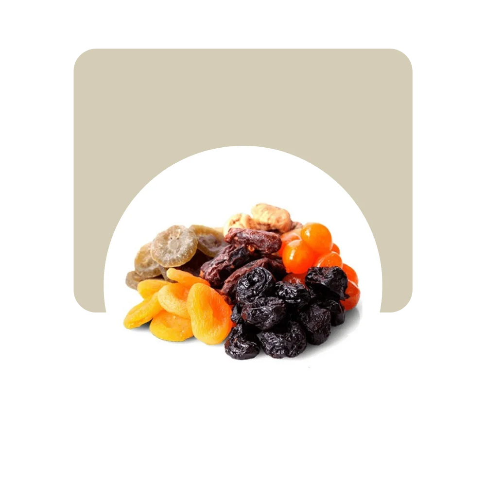 Es un mix compuesto de las principales frutas desecadas: ciruelas con carozo, peras, damascos y medallones de durazno.