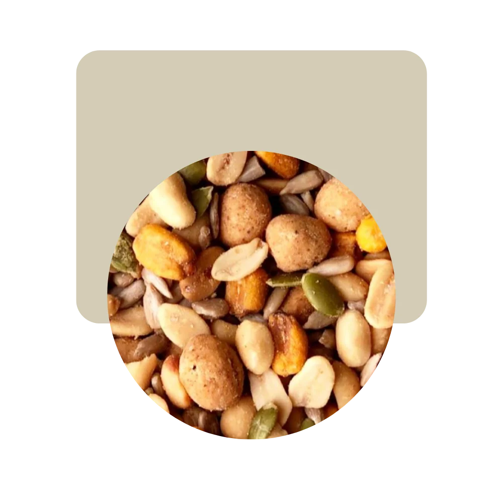 Excelente aporte de proteínas vegetales, grasas saludables, fibra, vitaminas y minerales tales como hierro y magnesio. Contiene sal. Ideal para incluir en una picada, agregar en ensaladas o woks para lograr una textura crujiente. También para consumir solo como un snack salado.