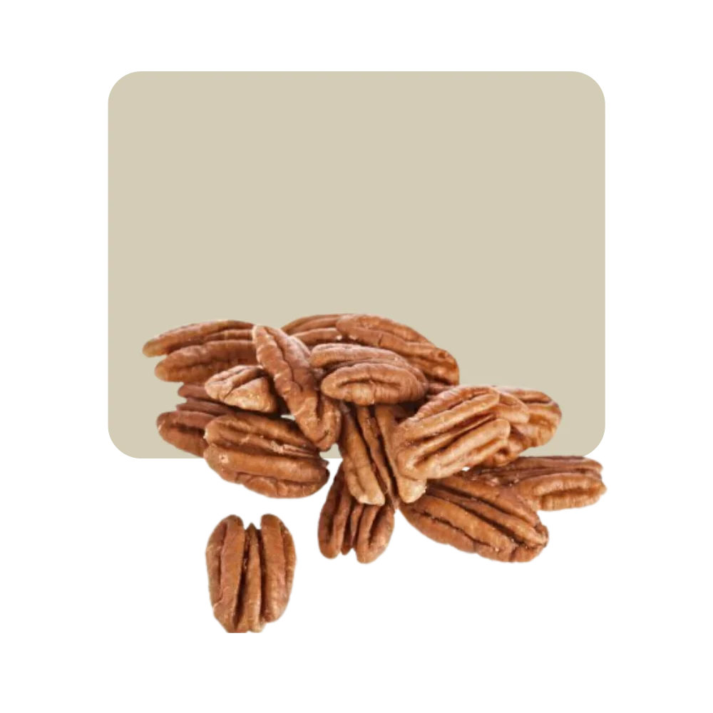 Nuez Pecan entera sin cáscara. Fruto seco de sabor muy suave.