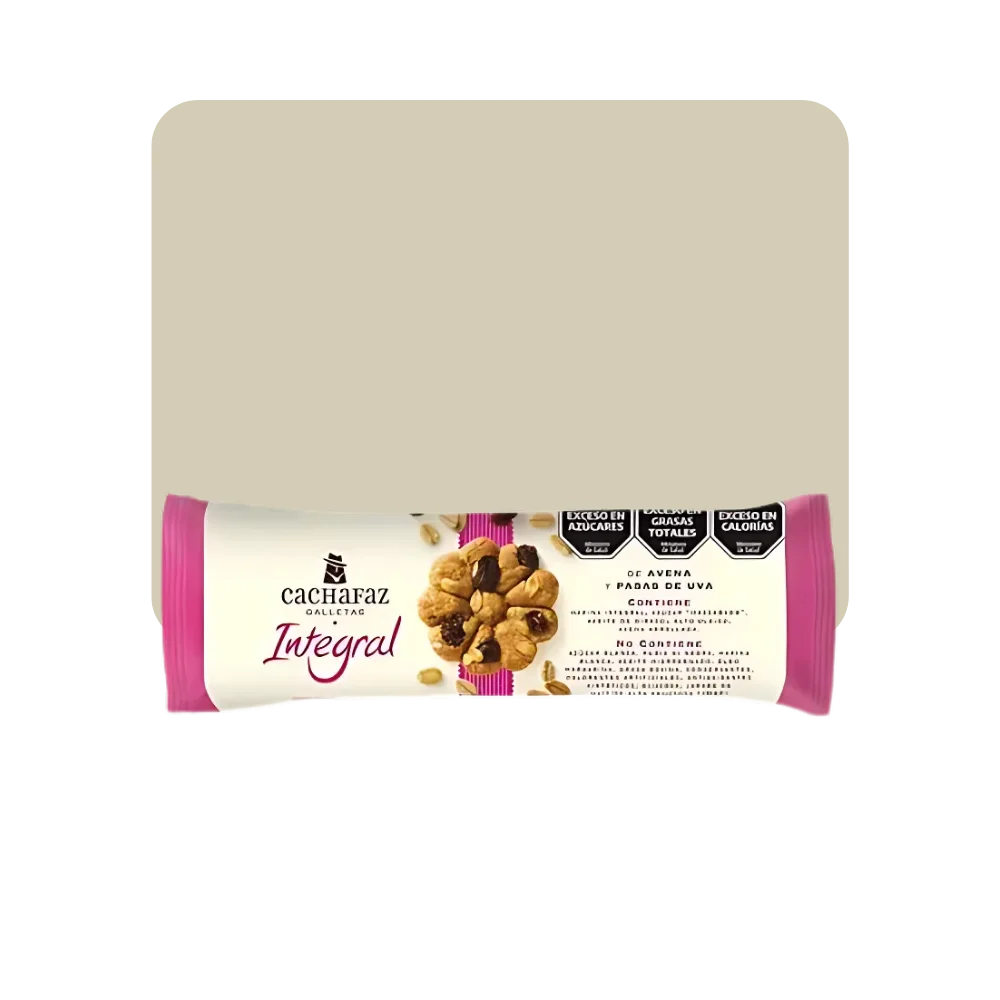 Ingredientes: Avena arrollada, harina integral, pasas de uva, azúcar mascabado,aceite de girasol alto oleico, almidón de maíz, RAI.: (INS 500ii y 503ii), sal marina, AROMATIZANTE/SABORIZANTE, antioxidante natural (tocoferoles). CONTIENE: DERIVADOS DE TRIGO Y AVENA. PUEDE CONTENER: TRAZAS DE LECHE, HUEVO, SOJA, MANI Y ALMENDRAS.