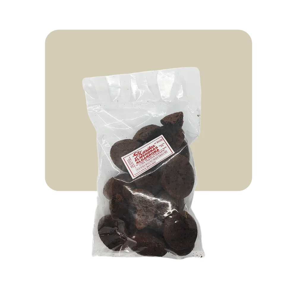 Ingredientes: harina integral, maiz, gluten, lecitina, miel, aceite vegetal, aceite de girasol, omega 3, 6 , 9, esencia de vainilla, algarroba.