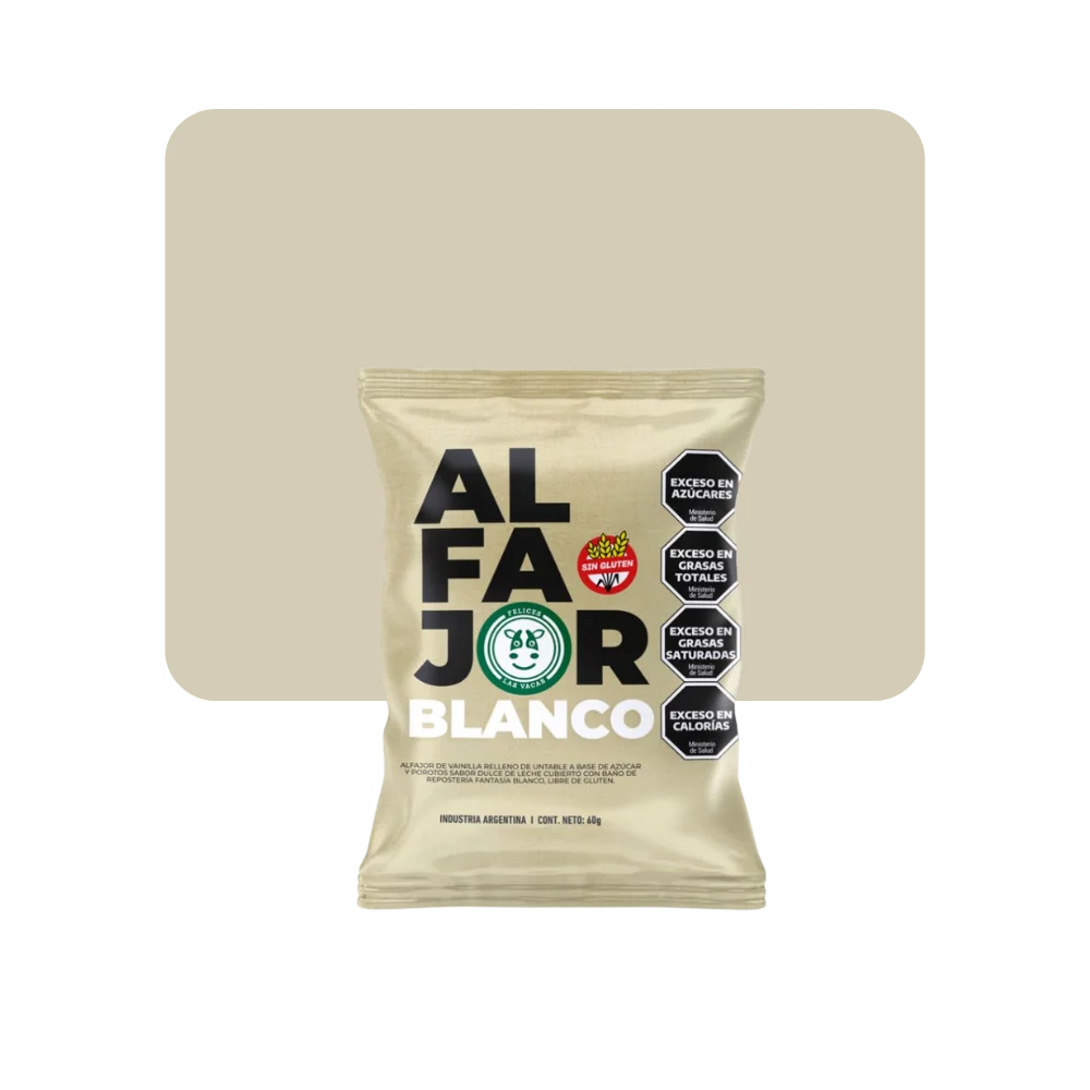 Ingredientes: Untable a base de azúcar y porotos (azúcar, porotos blancos, jarabe de glucosa, almidón, agua, aceite de girasol, aceite vegetal interesterificado, almendras, castañas de cajú, sal, EST: agar, ARO: dulce de leche, COL: caramelo, CONS: sorbato de potasio), galletita dulce sabor vainilla (Almidón de maíz, harina de arroz, aceite vegetal interesterificado, azúcar, jarabe de glucosa, agua, JMAF, sal, EMU: INS 415, INS 322, emulsionante a base de: INS (1520, 471, 475, 470, 422)), ARO: esencia de vainilla, RAI: INS (500ii, 503ii), COL: INS 100ii, CONS: INS (282, 202), baño de repostería fantasía blanco. CONTIENE ALMENDRA, CASTAÑA DE CAJÚ, SULFITOS Y DERIVADOS DE SOJA. PUEDE CONTENER AVELLANA, HUEVO, LECHE, MANÍ Y NUEZ.