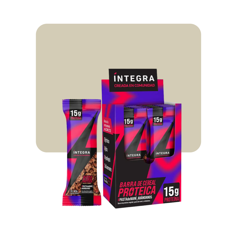 integra barra de cereal proteica pasta de maní y arándanos por caja