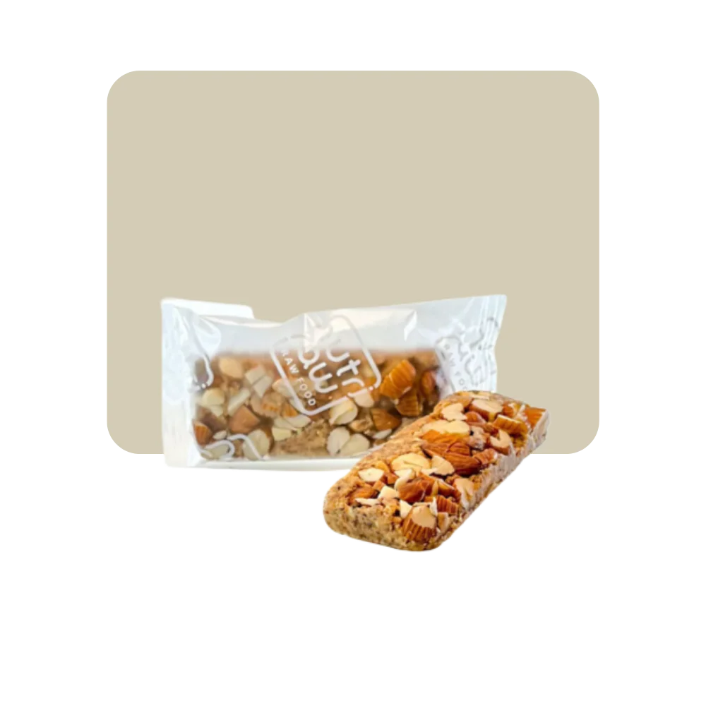 Ingredientes: maní, almendras, pasas de uva, ciruelas pasas, azúcar, sal marina.