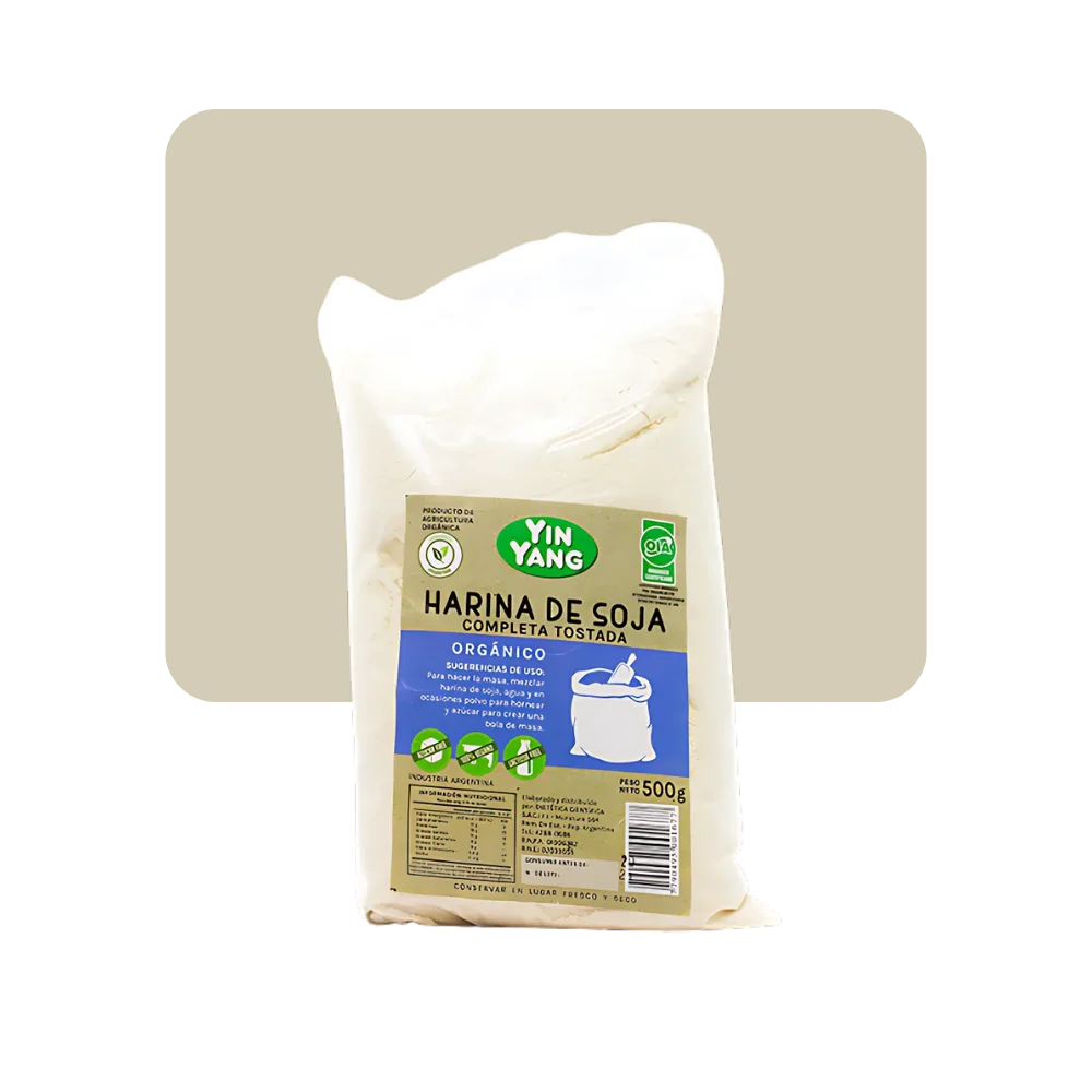 Harina de Soja legumbre de alta calidad nutricional. Sus proteínas son completas, teniendo todos los aminoácidos esenciales, siendo una excelente opción para vegetarianos y deportistas. Buen aporte de hierro, calcio, zinc, magnesio, y fibra. Bajo contenido de sodio y grasas.