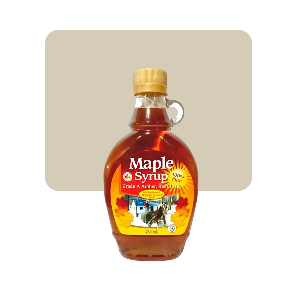 El Jarabe de Arce es un endulzante vegetal, de delicioso sabor dulce y consistencia ligera. Se trata de la savia del árbol de Arce. Rico energía y en flavonoides de propiedades antioxidantes, que ayudan a prevenir el envejecimiento celular y el desarrollo de enfermedades degenerativas. Brinda vitaminas B1, B2 y minerales, como calcio, zinc y manganeso. Es un sabroso complemento para todo tipo de platos.