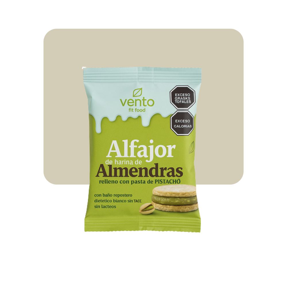 Una base de harina de almendras con un relleno de pistacho y una cobertura de chocolate blanco sin azúcares añadidos.
