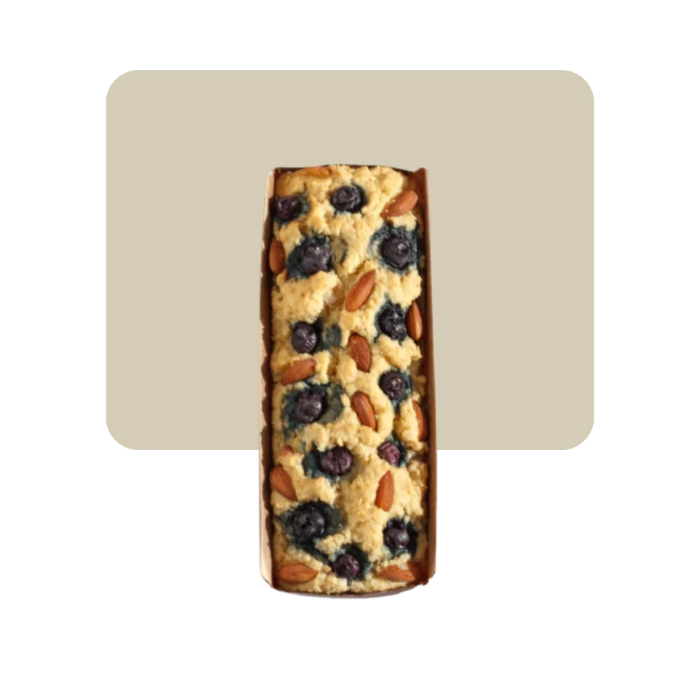 Ingredientes: harina de almendras, arándanos, huevo, manteca, stevia, extracto de vainilla, polvo de hornear.