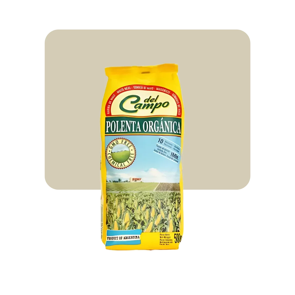 La harina de molienda fina se emplea para preparar polenta de cocción rápida y muy cremosa. Sin TACC. Certificado orgánico por Argencert.
