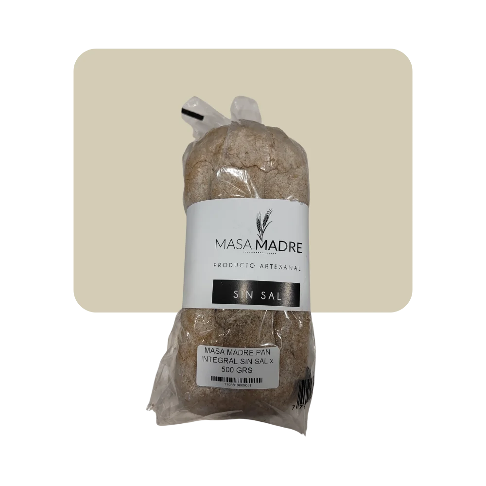 Pan artesanal elaborado con masa madre sin sal agregada.