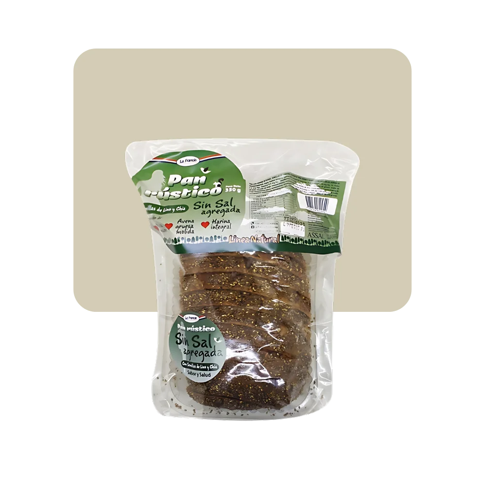 Pan a base de harina integral, salvado de trigo, semillas de girasol, de chía y avena. Sin sal ni azúcar agregada.