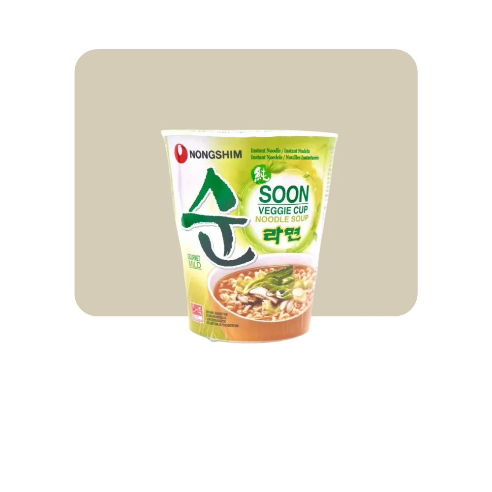El Soon Ramen Veggie de Nongshim ofrece fideos instantáneos en un caldo 100% vegetal, con un perfil de sabor delicado, especiado y equilibrado. Es una excelente opción para quienes buscan una comida rápida, liviana y reconfortante, sin carne ni sabores artificiales intensos.