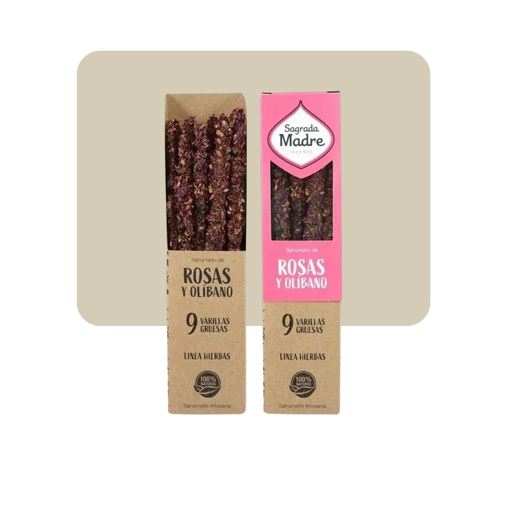 Composición: Pétalos de rosa y aceite esencial de rosa, olíbano, carbón vegetal, aglutinante a base de plantas.