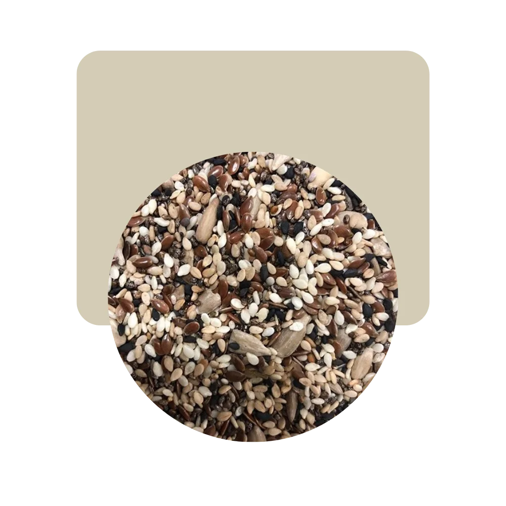 Excelente combinación de semillas de girasol, lino, chía, sésamo integral, negro y blanco. Saludables y muy nutritivas. Ricas en proteínas, fibra, aceites cardioprotectores omega 3 y omega 6, calcio, magnesio, zinc, hierro, fósforo, potasio, vitaminas del complejo B y E. Favorece la regulación del tránsito intestinal, disminuye el colesterol y brinda saciedad.