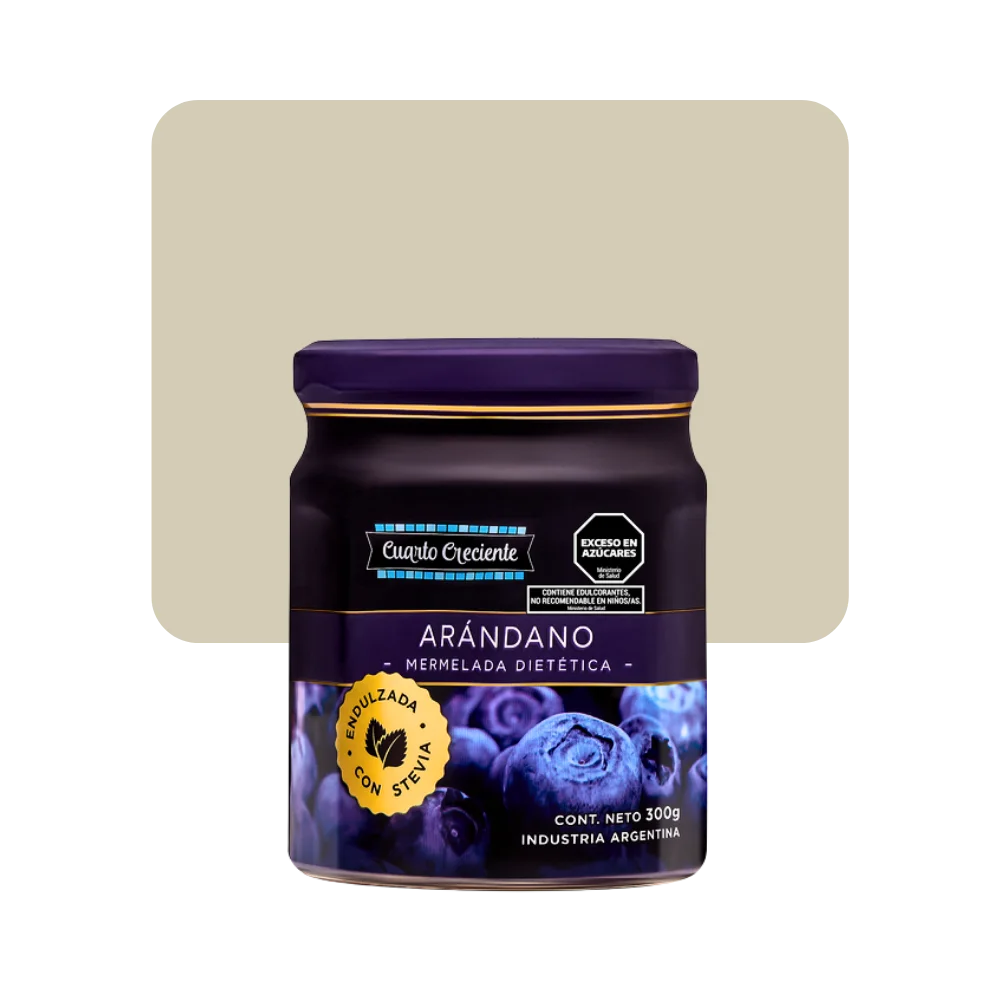 Ingredientes: Agua, arándanos, mosto de uva, GEL INS 440 Pectina, ACI INS 330 Ácido Cítrico, CONS INS 211 Benzoato de sodio, INS 202 Sorbato de potasio, EDU INS 960 Esteviolglicósidos (2mg/100g.). Puede contener sulfitos.