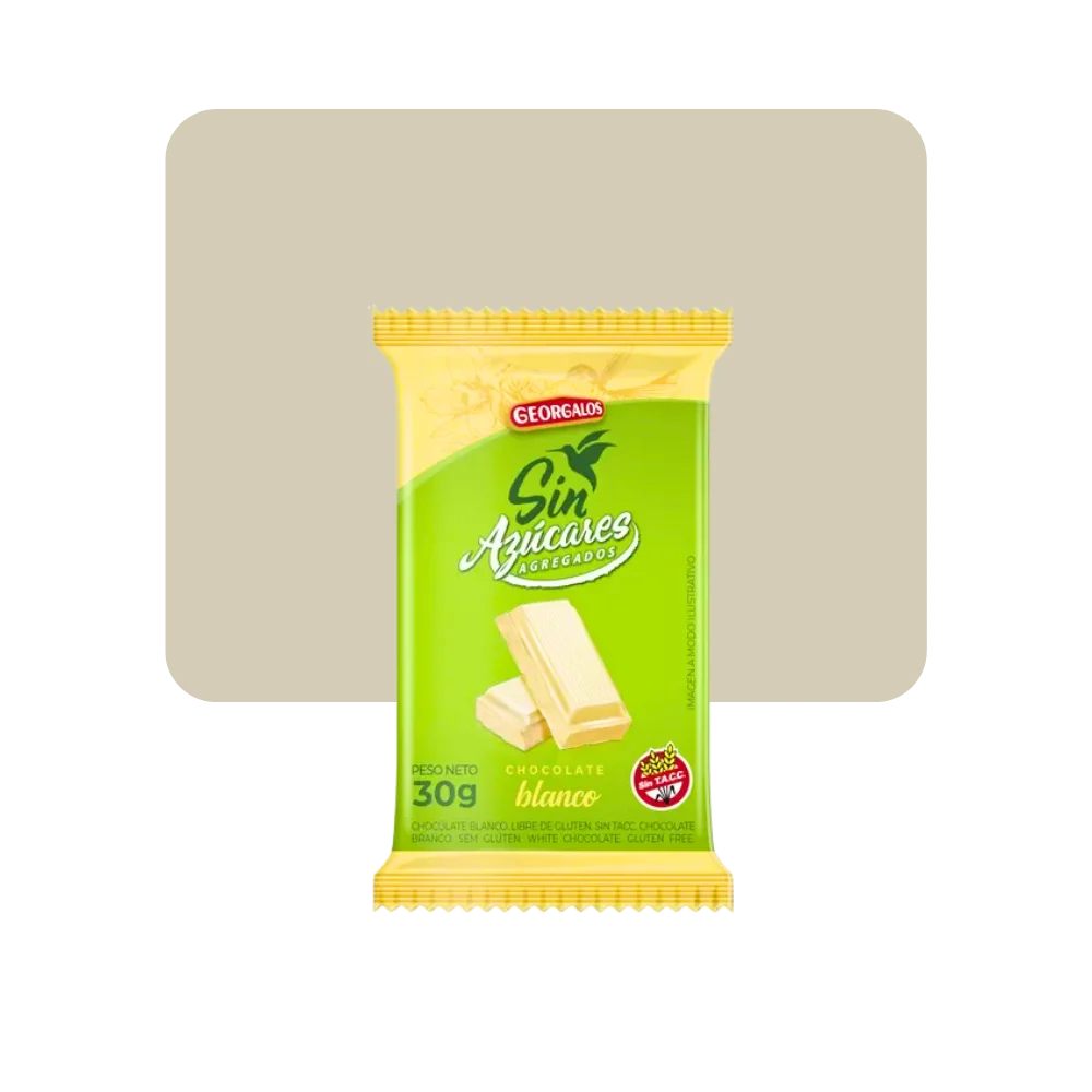 Tableta de chocolate blanco sin agregado de azúcar.