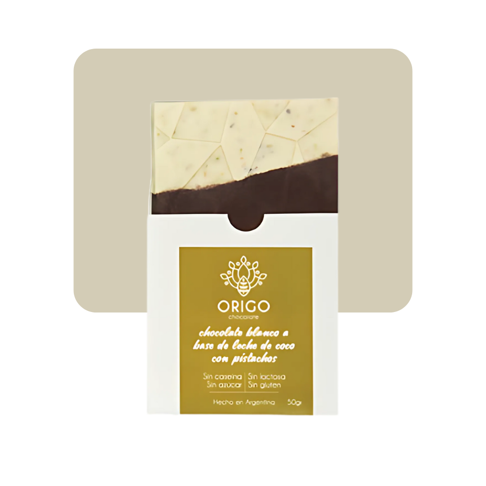 Esta tableta ofrece un sabor suave y auténtico, ideal para quienes buscan una experiencia chocolatosa blanca y con una mezcla de leche de coco y pistachos crocantes.